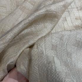 Ткань может давать минимальную усадку 1-2% после первой стирки. Благодаря преобладанию полиамида демонстрирует высокую устойчивость к износу, сохраняет четкость абстрактных узоров и нежный сливочный цвет даже после многократных циклов стирки. Устойчива к деформации и образованию катышков.