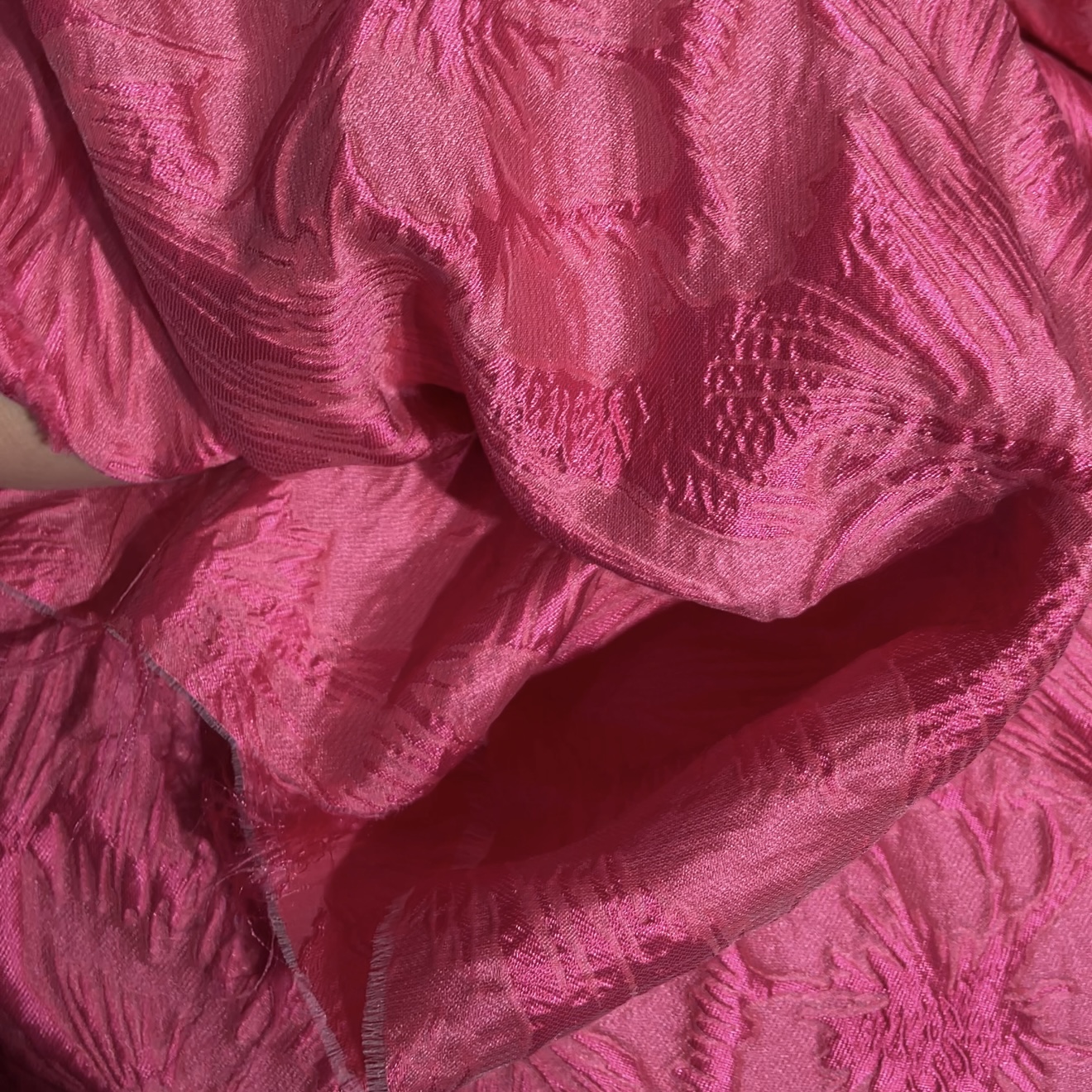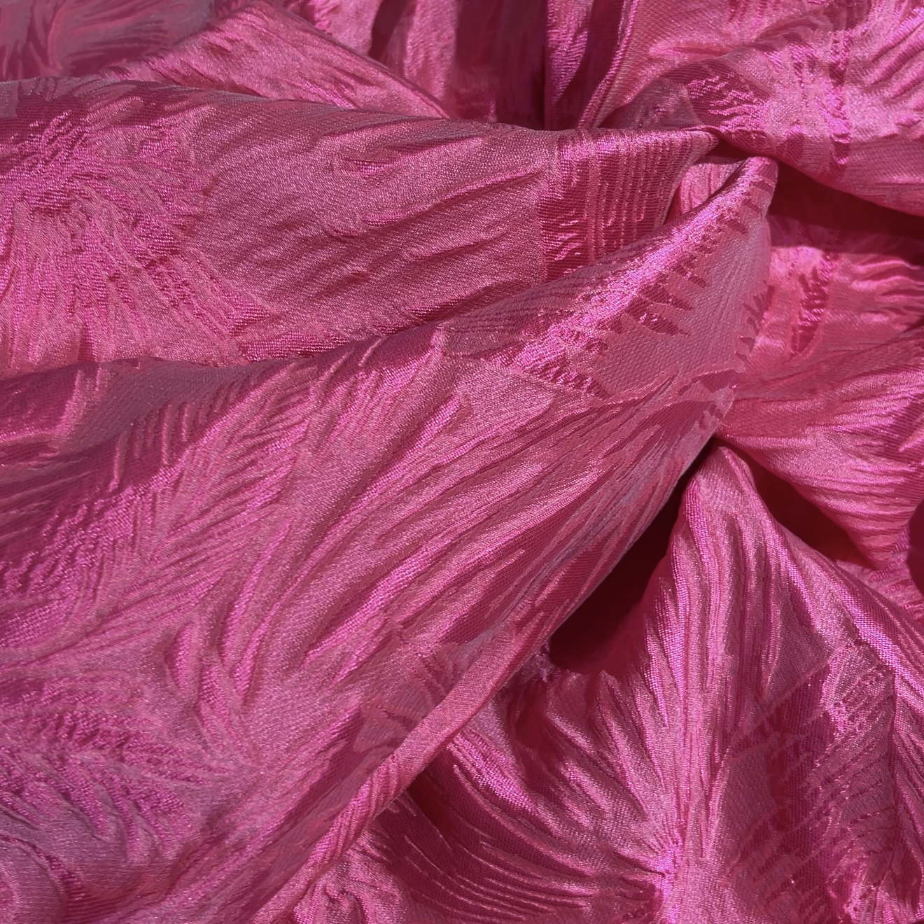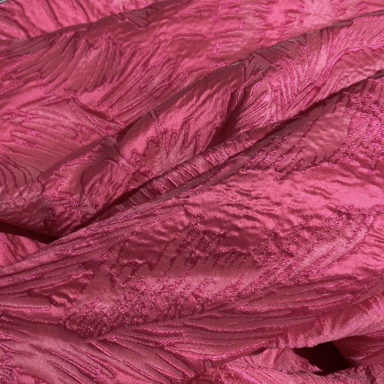 Яркая итальянская ткань из 100% полиэстера насыщенного цвета фуксия с декоративным узором от бренда Diffusione Tessile. Материал отличается интенсивным цветом и выразительным принтом, создающим динамичный визуальный эффект. Гладкая поверхность с легким блеском подчеркивает глубину оттенка и делает узор особенно выразительным. Ткань непрозрачная, не требует дополнительной подкладки, хорошо держит форму и драпируется в мягкие складки. Идеально подходит для создания смелых fashion-образов, вечерних нарядов, детской одежды, а также для декоративных изделий и интерьерного дизайна.