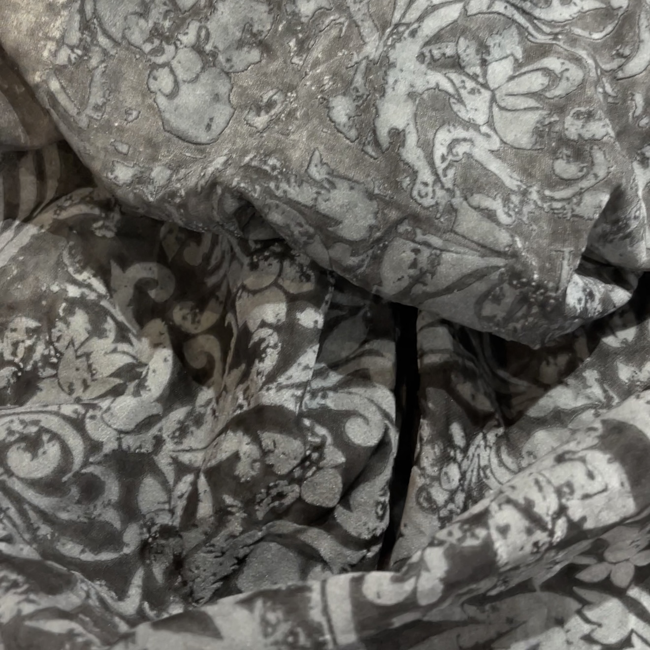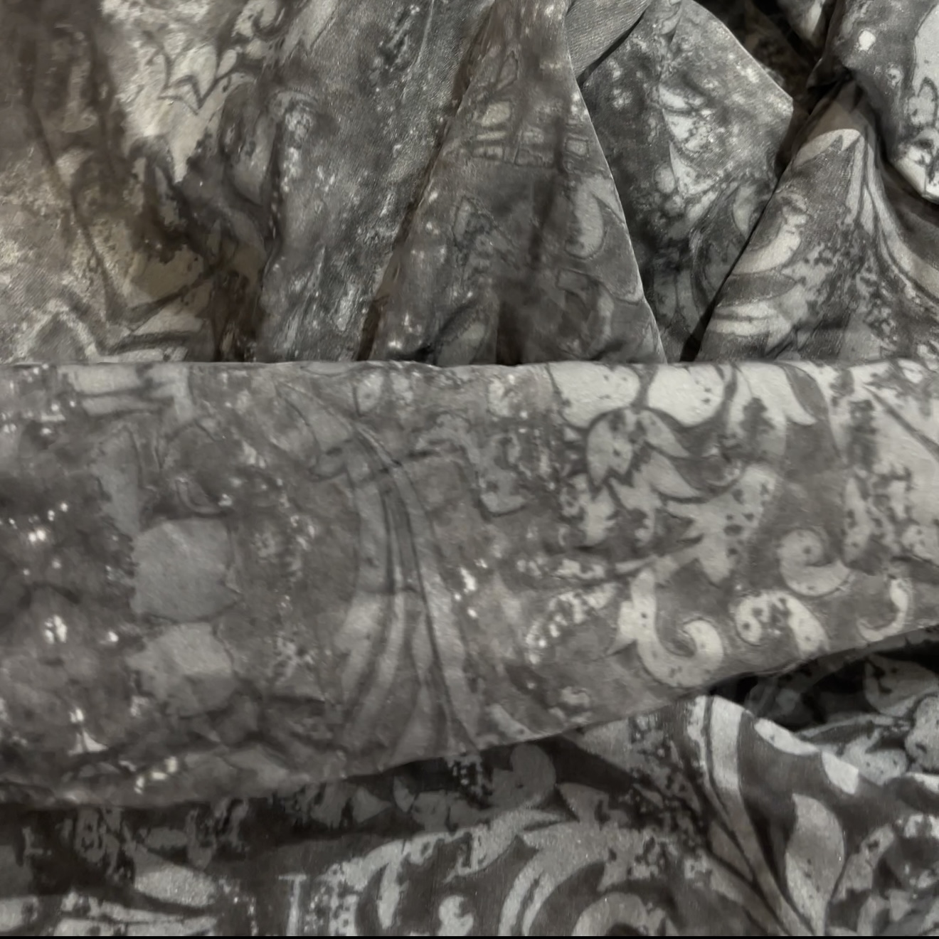 Стильная итальянская ткань из 100% полиэстера серого цвета с современным абстрактным принтом от бренда Diffusione Tessile. Материал сочетает в себе практичность полиэстера и художественную выразительность за счет уникального абстрактного рисунка, создающего динамичный визуальный эффект. Ткань отличается высокой прочностью и износостойкостью, хорошо держит форму, не мнется и сохраняет презентабельный вид в течение всего дня. Абстрактный принт выполнен с высокой четкостью и не теряет своей выразительности при эксплуатации. Ткань непрозрачная, не требует дополнительной подкладки, хорошо драпируется. Рекомендуется для пошива платьев, юбок, блузок, детской одежды, а также для создания модных аксессуаров и декоративного оформления интерьеров.