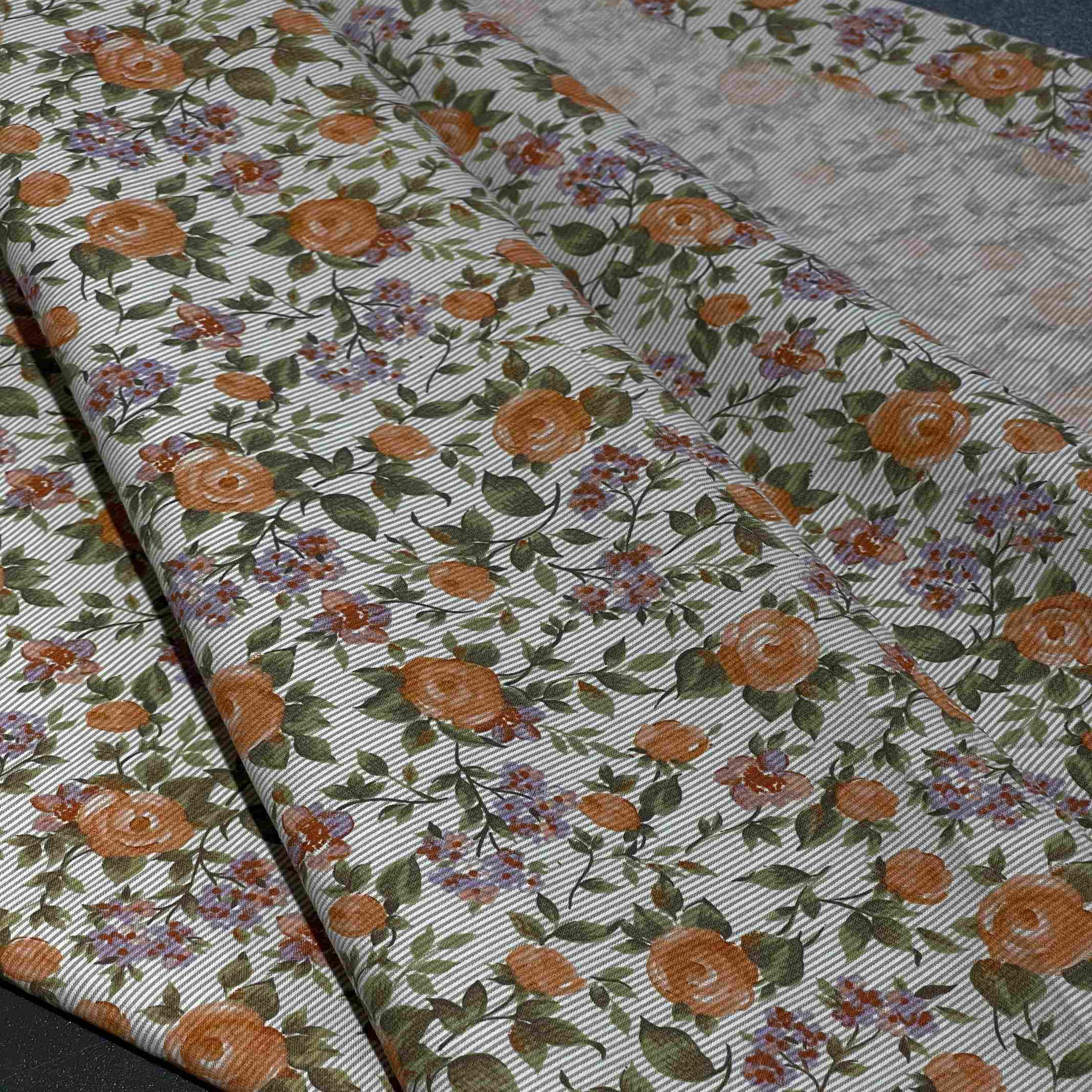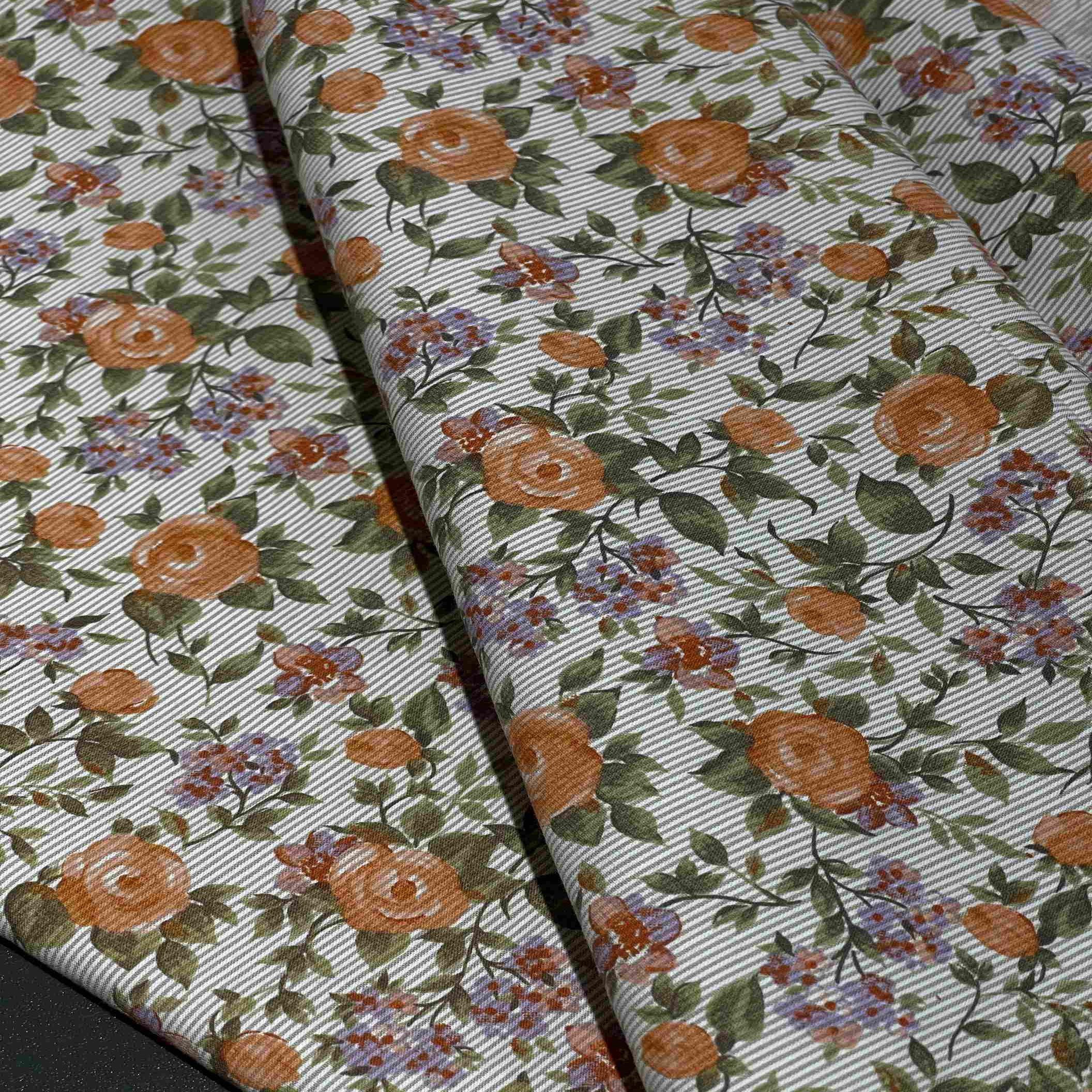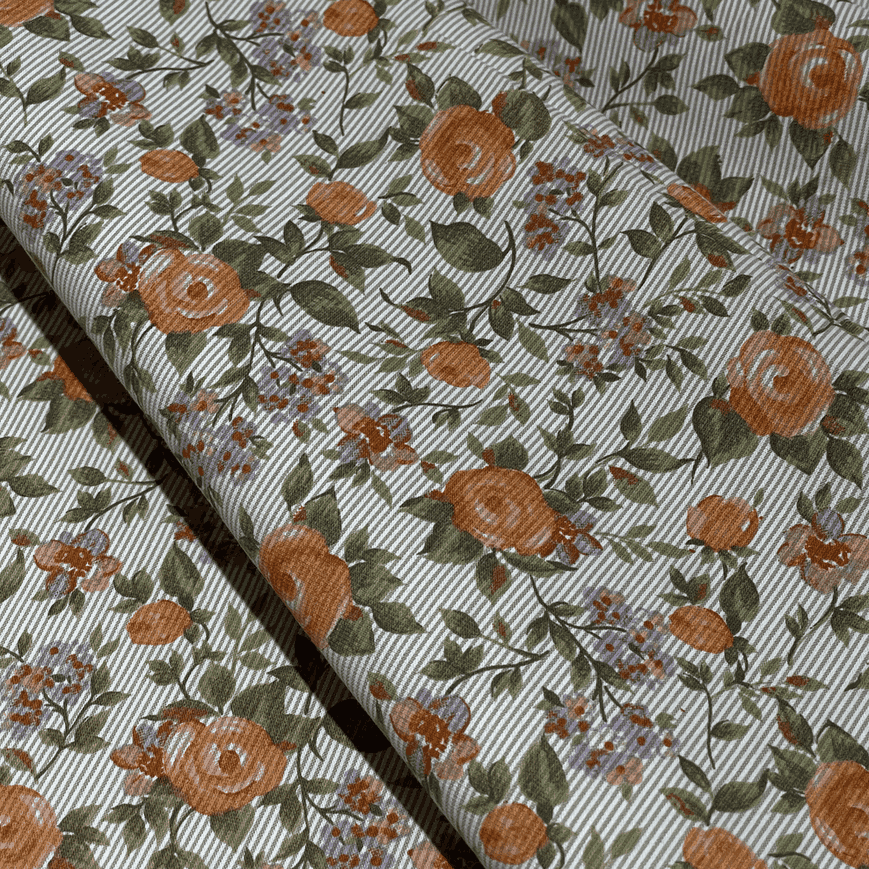 Хлопковое полотно с комбинированным набивным принтом (цветы на полоске)