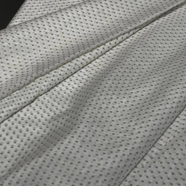 Ткань обладает средней износостойкостью из-за своей легкости и полупрозрачности. После первой стирки возможна усадка 3-5%. Рисунок горошка устойчив к выцветанию при правильном уходе. Материал может быть подвержен механическим повреждениям (затяжкам) и требует бережного обращения.