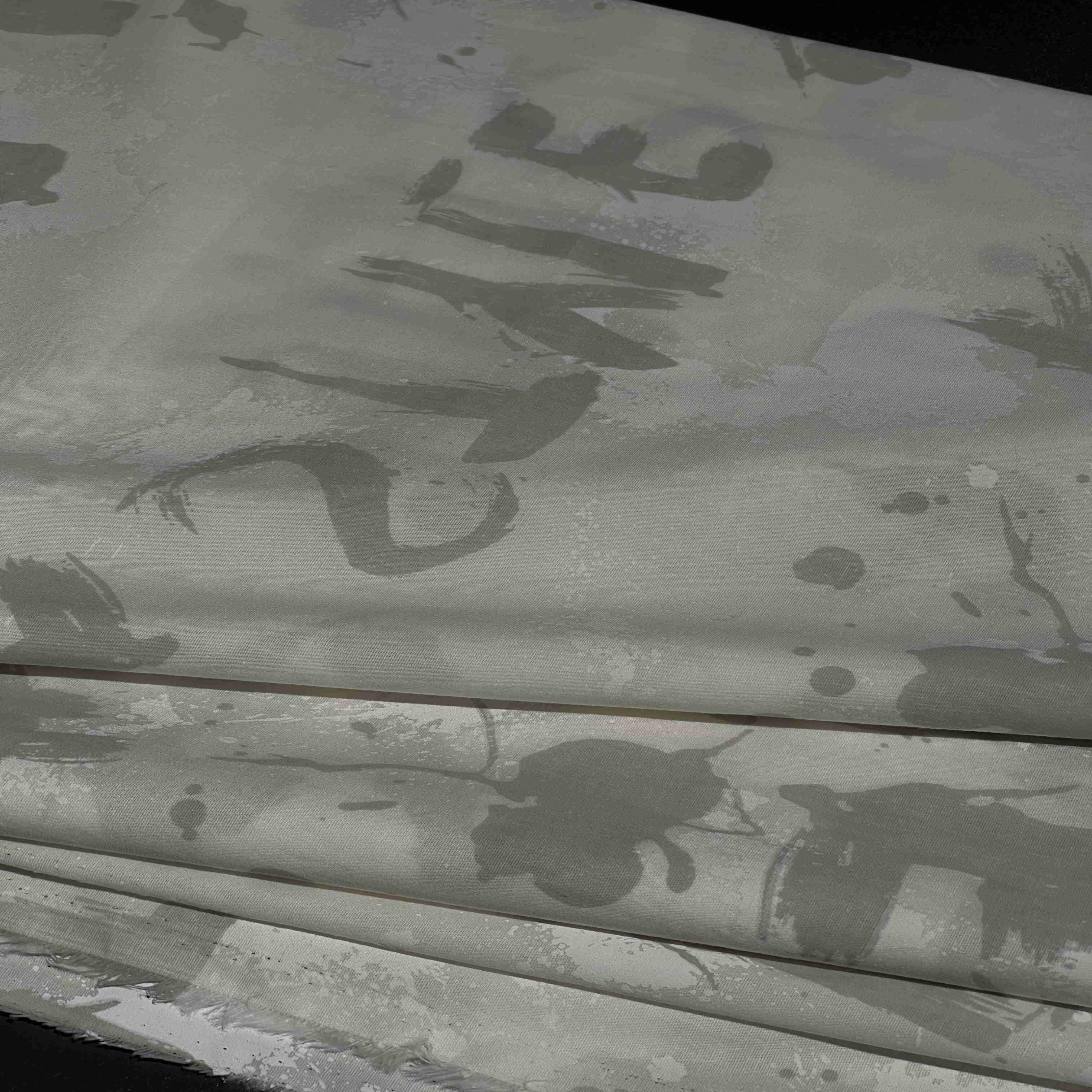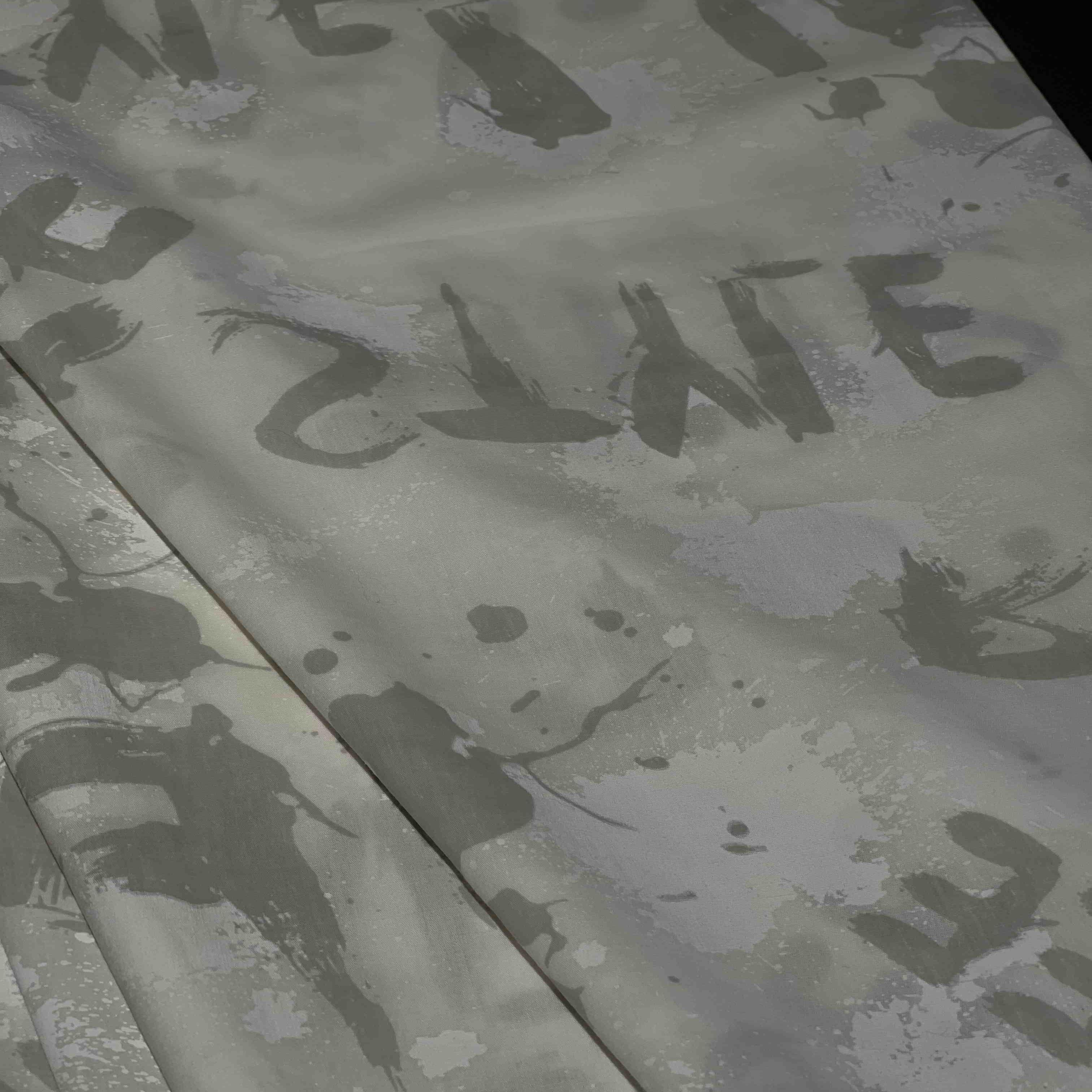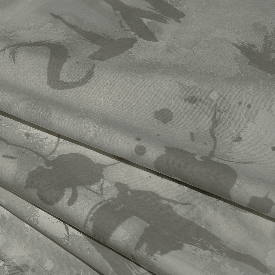 Ткань может дать усадку 3-5% после первой стирки. При правильном уходе демонстрирует отличную стойкость серо-белой гаммы и четкость абстрактного рисунка.