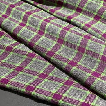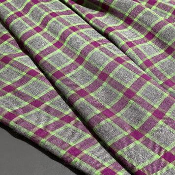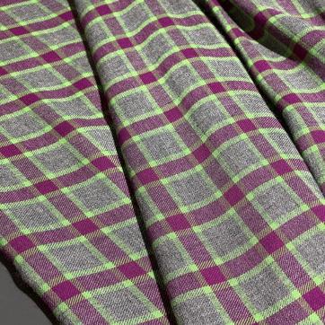Для сохранения насыщенности фиолетового цвета и четкости клетчатого узора стирайте при температуре до 30°C в щадящем режиме. Используйте мягкие моющие средства для цветных тканей, избегайте отбеливателей. Рекомендуется стирка с аналогичными по цвету вещами. Гладьте утюгом с режимом «Хлопок» (средняя температура) с изнаночной стороны, можно использовать пар.