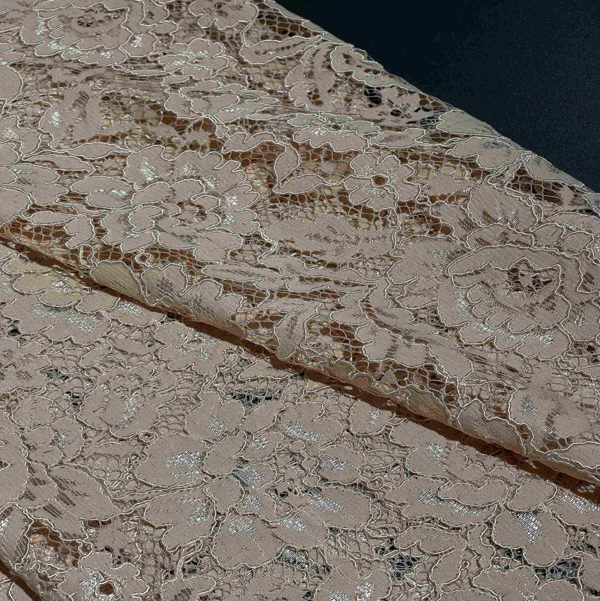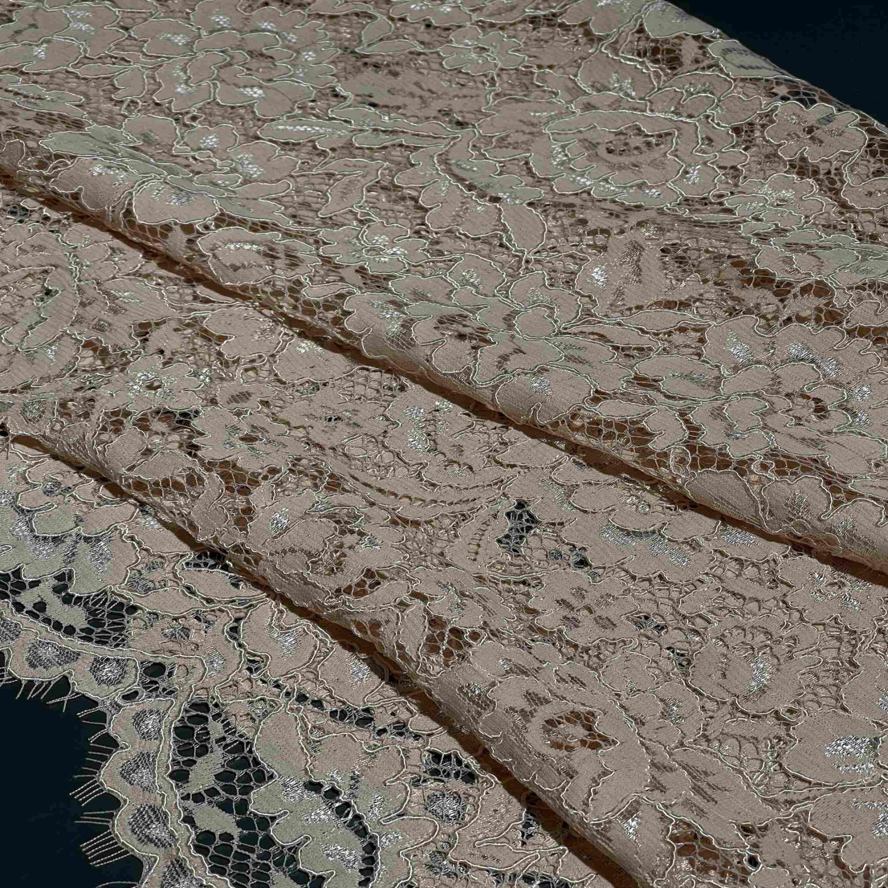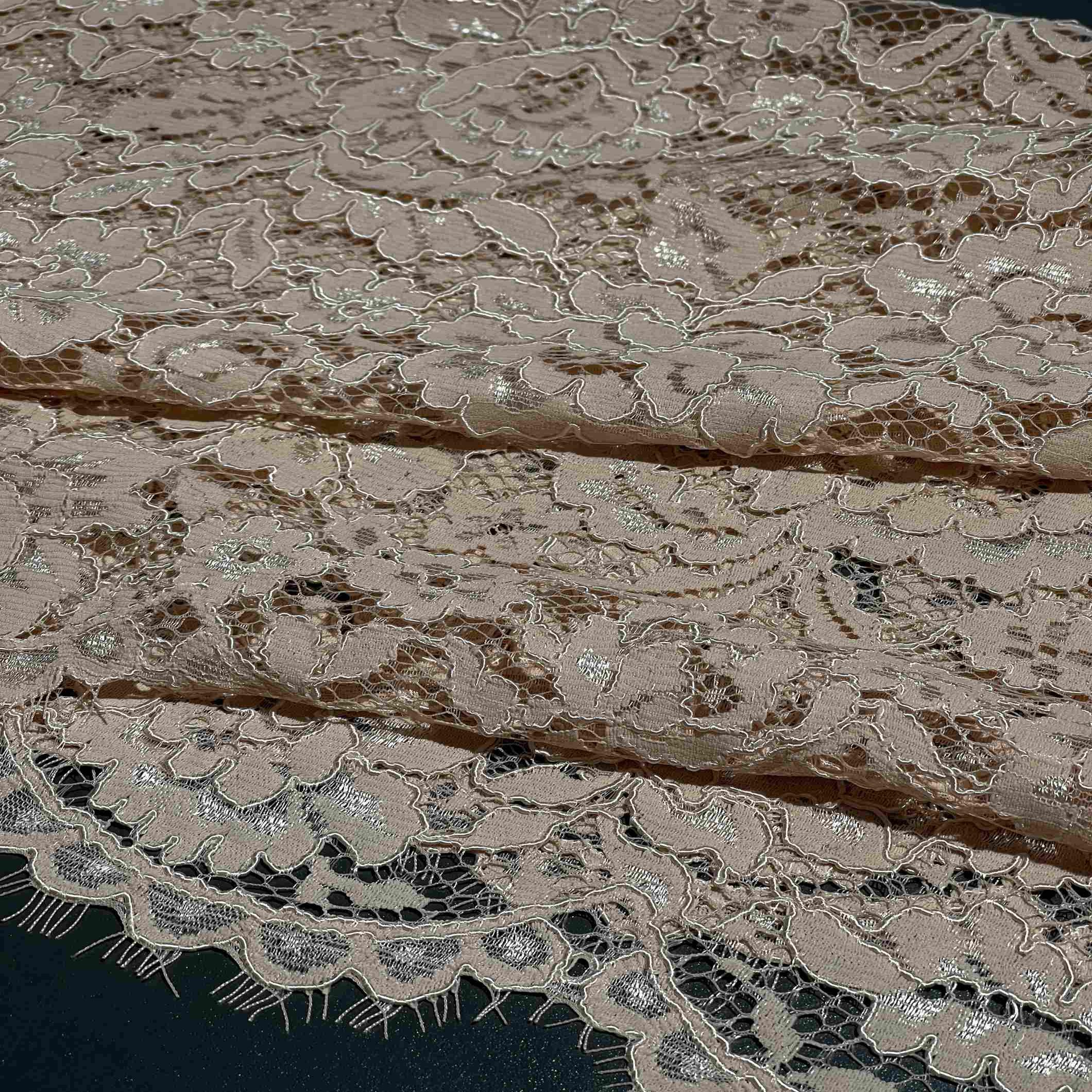 Итальянский полиэстер нежного бежевого цвета в изысканном кружевном исполнении (артикул 119328) — это воплощение утонченной женственности и сдержанной элегантности. Теплый, благородный бежевый оттенок придает ажурному кружеву мягкость и универсальность, позволяя создавать как романтичные, так и повседневные образы. Синтетический состав обеспечивает формоустойчивость, эластичность и износостойкость, позволяя кружеву хорошо драпироваться и сохранять изящный рисунок. Материал идеально подходит для пошива блузок, платьев, топов, белья, а также для декоративных элементов и отделки в стиле романтика и бохо.