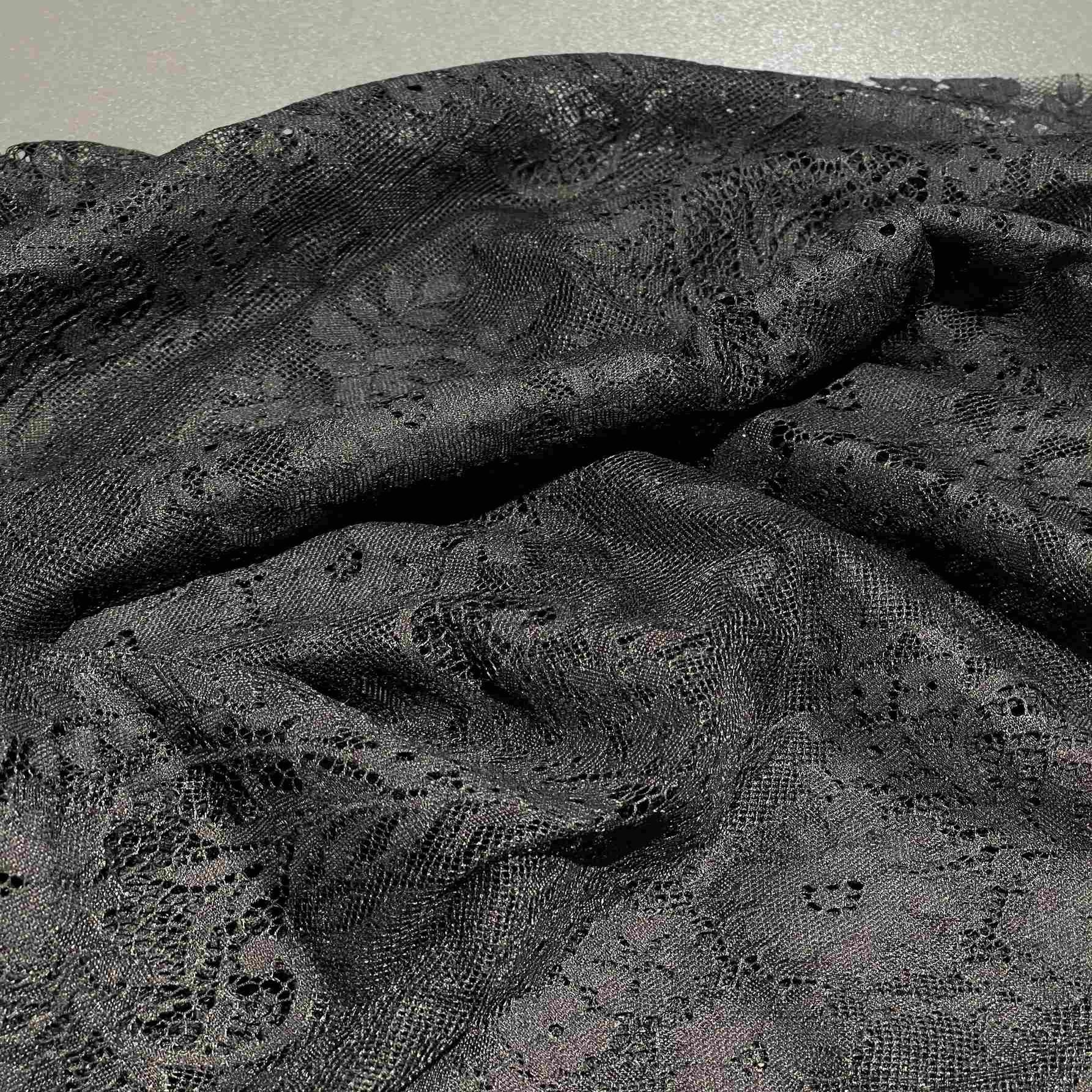 Итальянский полиэстер глубокого черного цвета в изысканном кружевном исполнении (артикул 184017-2) — это воплощение загадочности, женственности и элегантности. Ажурное кружево с разнообразными цветочными или геометрическими узорами создает эффект утонченной прозрачности и визуальной легкости. Глубокий черный цвет придает кружеву особую выразительность и драматизм, делая его идеальным выбором для вечерних и романтичных образов. Синтетический состав обеспечивает формоустойчивость, эластичность и износостойкость, позволяя кружеву хорошо драпироваться и сохранять рисунок. Материал идеально подходит для пошива вечерних и коктейльных платьев, блузок, белья, пеньюаров, а также для декоративных элементов и отделки.