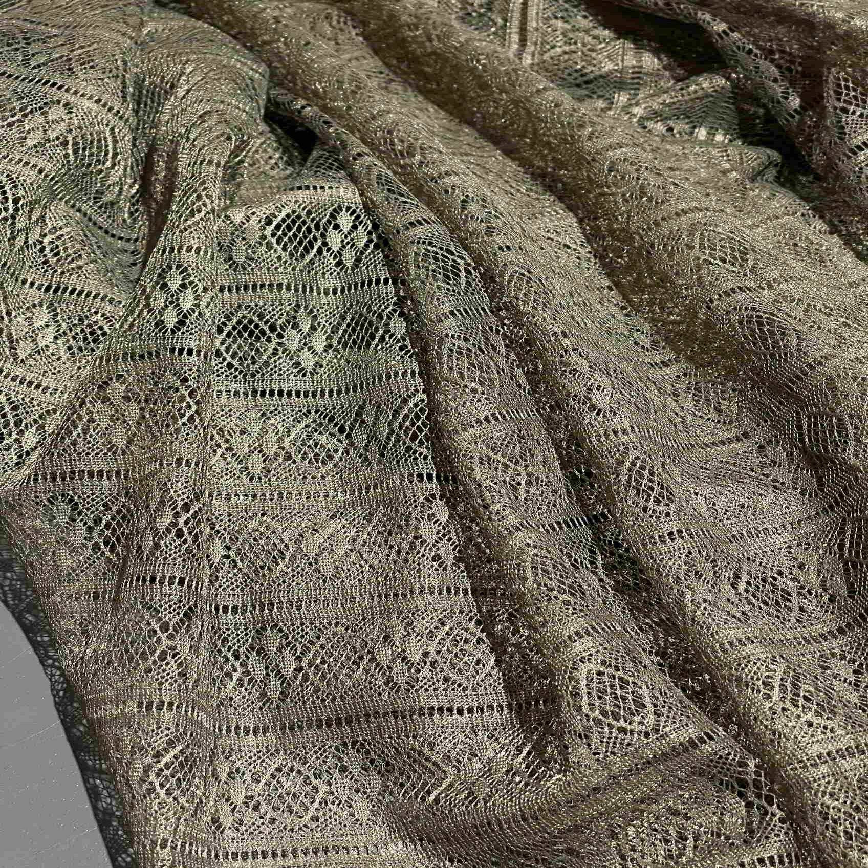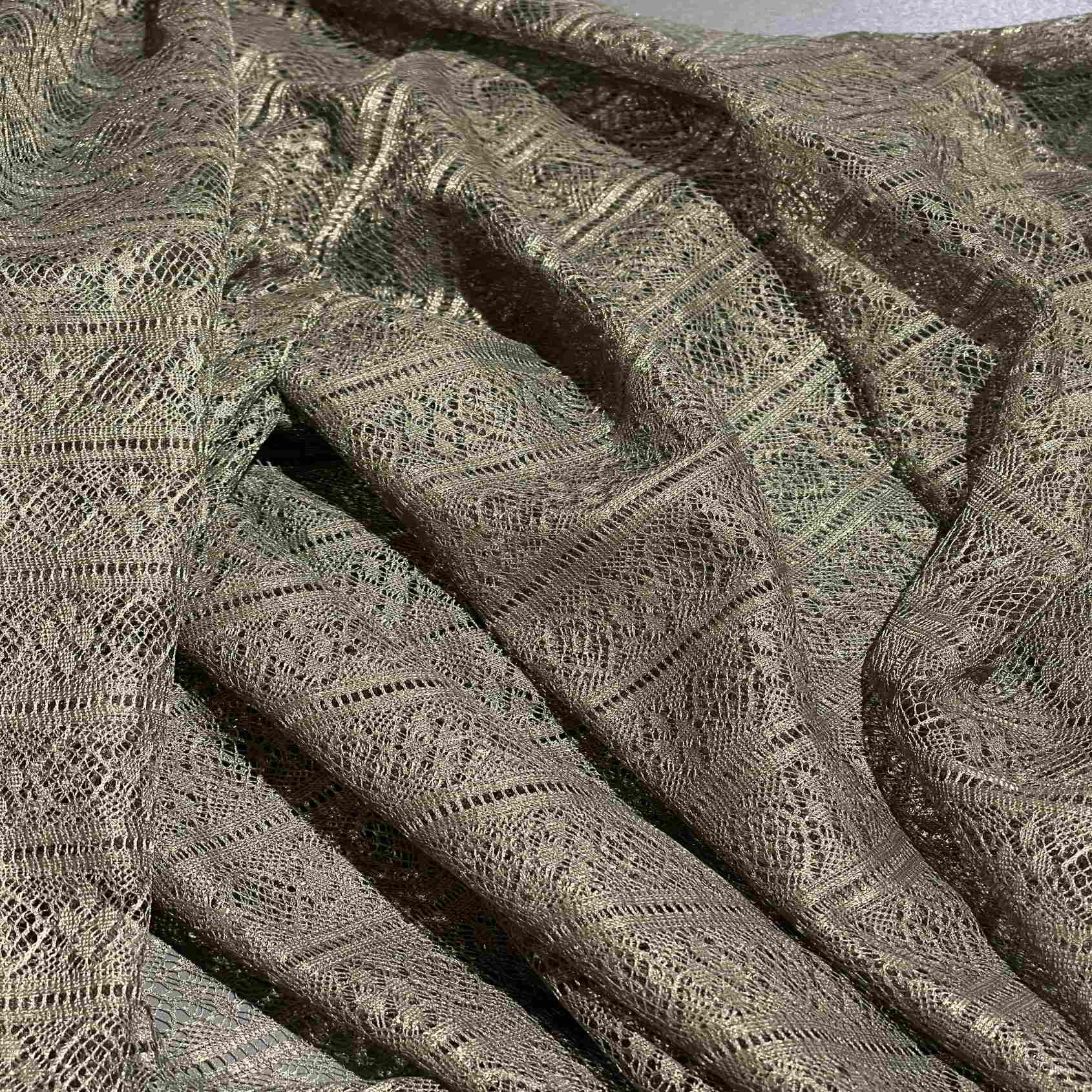 Итальянский полиэстер цвета хаки в изысканном кружевном исполнении (артикул 184017-1) — это сочетание практичности и утонченной женственности. Спокойный, благородный оттенок хаки придает кружеву сдержанность и элегантность, делая его уместным не только в романтичных, но и в повседневных образах. Ажурный рисунок создает эффект прозрачности и визуальной легкости. Синтетический состав обеспечивает формоустойчивость и износостойкость, позволяя кружеву хорошо драпироваться и сохранять форму. Материал идеально подходит для пошива блузок, платьев, топов, а также для декоративных элементов и отделки в стиле бохо и casual.