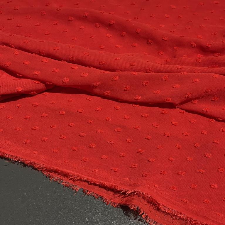 Итальянский полиэстер яркого красного цвета с изысканным принтом «мушка» (мелкий горошек), артикул 119252-1. Эта легкая, струящаяся ткань, выполненная в технике шифона, создает эффектный и романтичный образ. Насыщенный красный фон гармонично сочетается с деликатным мелкодисперсным узором, который добавляет полотну игривости и визуальной легкости. Благодаря синтетическому составу материал отличается высокой износостойкостью, не мнется, быстро сохнет и сохраняет яркость принта даже после многократных стирок. Шифоновая фактура обеспечивает превосходную драпируемость, позволяя создавать мягкие струящиеся силуэты. Ткань идеально подходит для пошива летних платьев, блузок, туник, юбок, а также для декоративных элементов и аксессуаров.