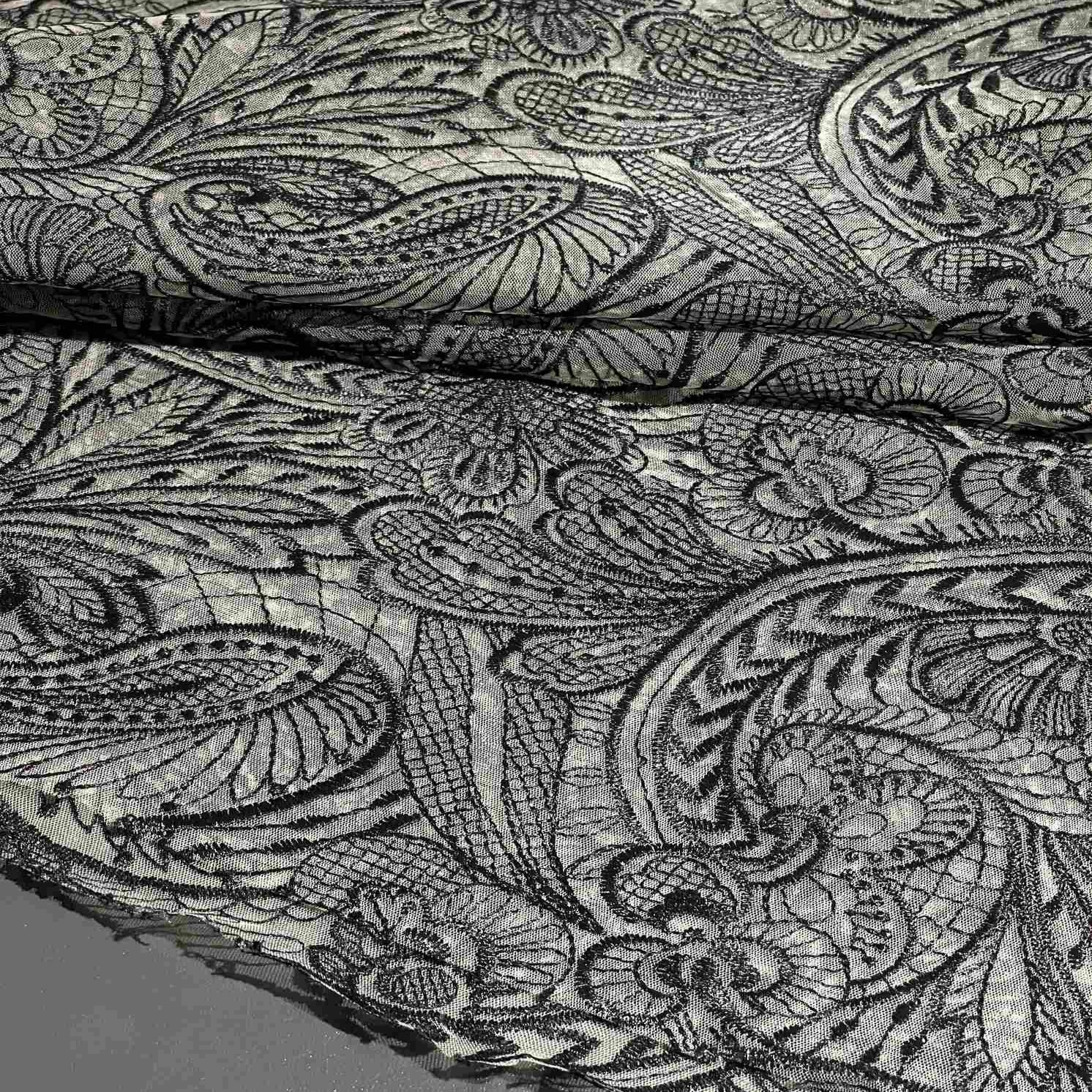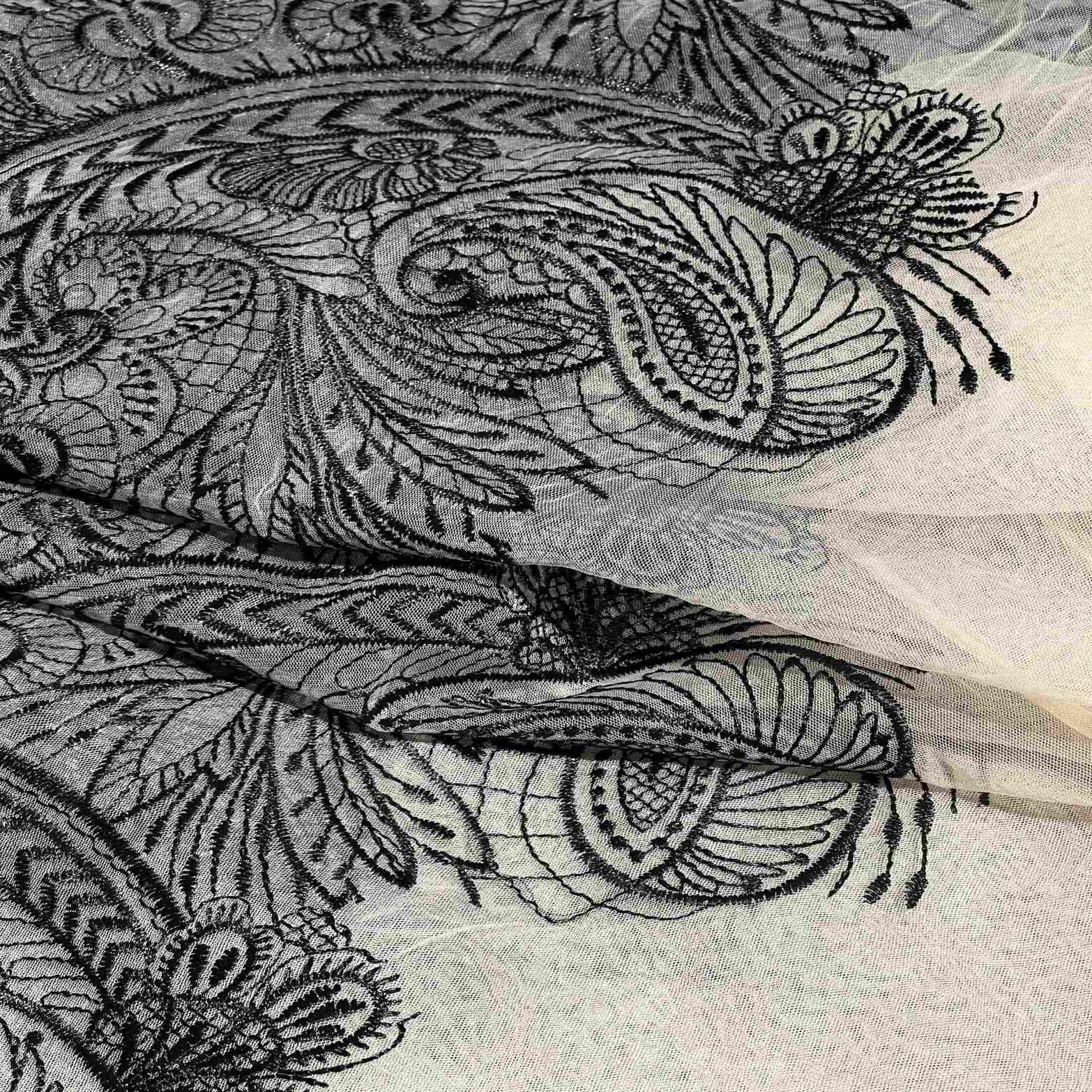 Итальянский полиэстер нежного кремового цвета на изящной сетчатой основе с изысканной вышивкой в стиле пейсли (артикул 187330-1) — это воплощение восточной роскоши и воздушной элегантности. Прозрачная сетка создает эффект невесомости, позволяя коже или подкладке деликатно просвечивать, а объемная вышивка с узором "пейсли" формирует выразительный, фактурный орнамент, приковывающий внимание. Синтетический состав обеспечивает формоустойчивость и износостойкость. Вышивка надежно закреплена на сетчатой основе, что гарантирует ее сохранность даже при активной эксплуатации. Материал идеально подходит для пошива вечерних и коктейльных платьев, нарядных блузок, топов, а также для декоративных элементов интерьера и аксессуаров в этническом и винтажном стиле.
