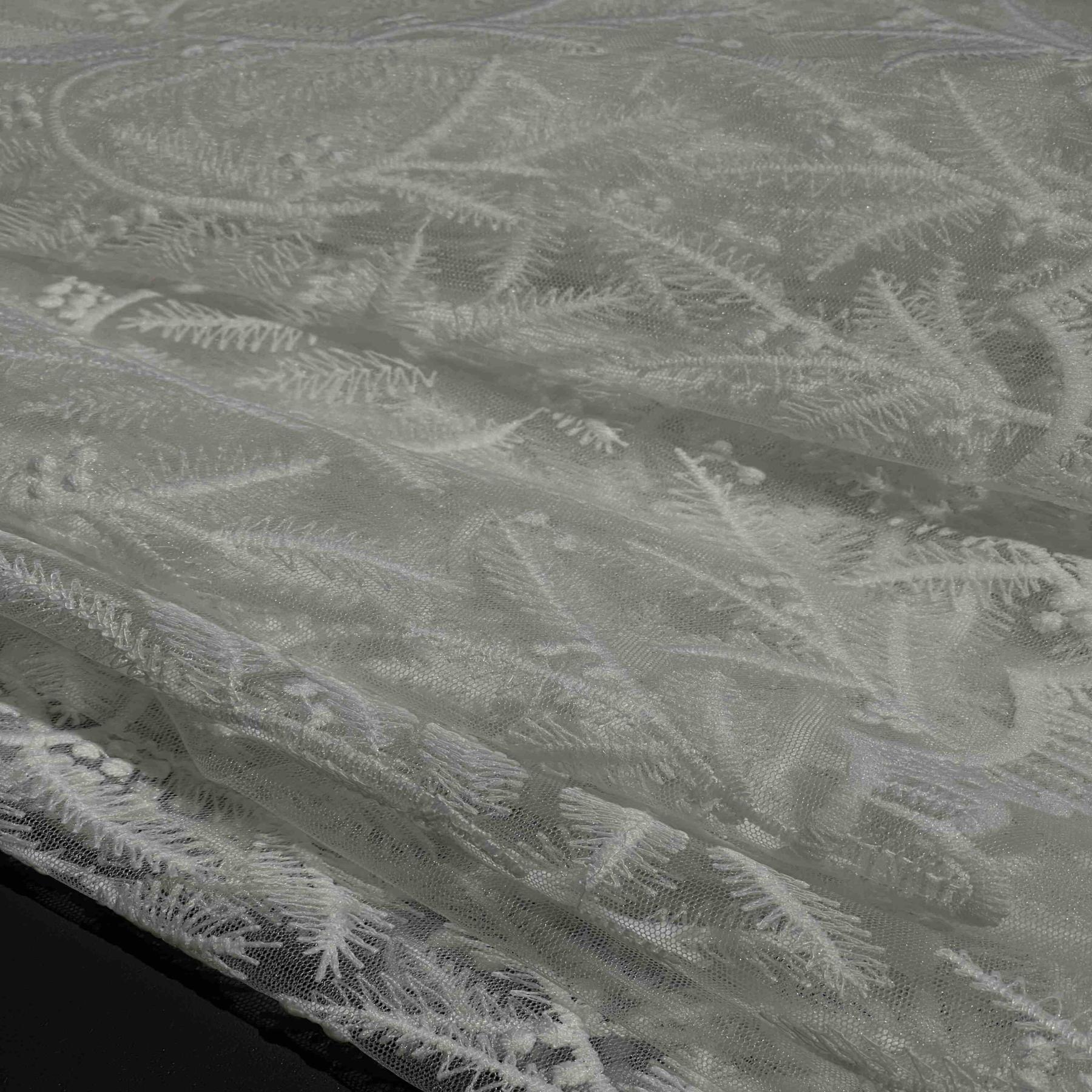 Итальянский полиэстер — изысканная вышивка на тонкой прозрачной сетке (артикул 178474). Невесомая сетчатая основа создает эффект воздушности и позволяет коже или подкладке деликатно просвечивать, а декоративная вышивка, выполненная объемными нитями, формирует выразительный, фактурный узор, приковывающий внимание. Синтетический состав обеспечивает формоустойчивость и износостойкость. Вышивка надежно закреплена на сетчатой структуре, что гарантирует ее сохранность даже при активной эксплуатации. Материал идеально подходит для пошива вечерних и коктейльных платьев, блузок, топов, а также для декоративных элементов и аксессуаров в стиле романтика, гламур и винтаж.