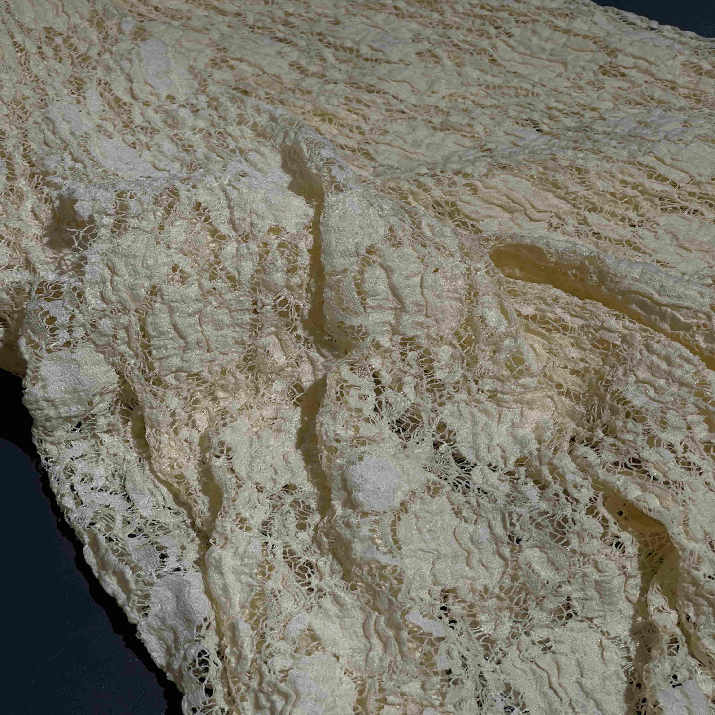 Итальянский полиэстер яркого желтого цвета с изысканным кружевным узором (артикул 187363-1) — это эффектная и жизнерадостная ткань для создания смелых, праздничных и женственных образов. Материал имитирует нежное кружево, обладая при этом практичностью синтетического волокна: высокой прочностью, износостойкостью, минимальной сминаемостью и способностью отлично держать форму. Солнечный желтый цвет в сочетании с ажурным кружевным плетением добавляет ткани легкости, романтичности и позитивной энергии, делая ее идеальным выбором для летних и вечерних нарядов, блузок, топов, платьев, нижнего белья и декоративных элементов одежды в стилях романтика, бохо или праздничная мода. Ткань обладает средней воздухопроницаемостью и хорошо драпируется. Она устойчива к пиллингу и истиранию. Прозрачность материала требует использования подкладки для большинства моделей.