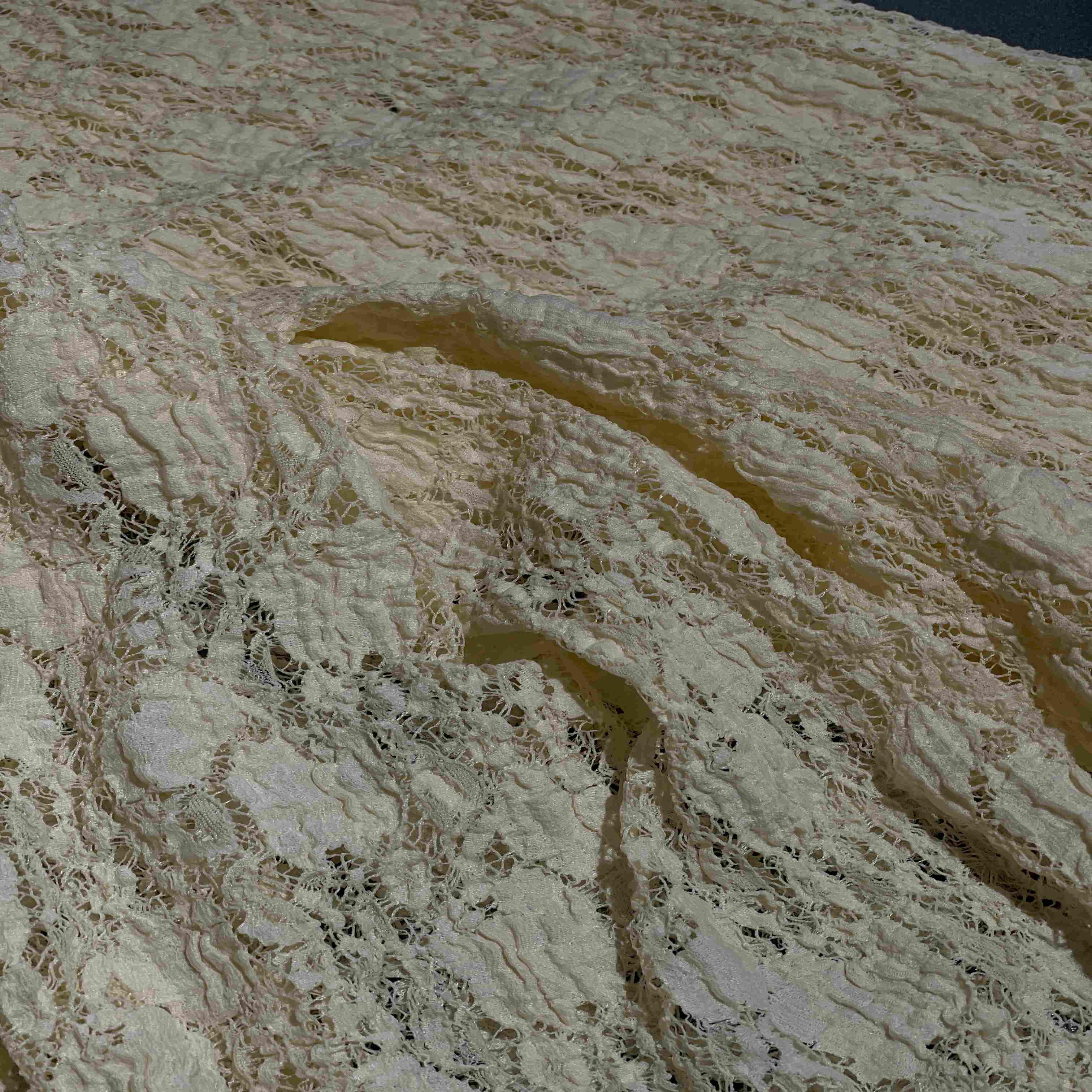 Ткань практически не дает усадки (менее 1-2%) и сохраняет форму и яркость цвета после множества стирок. Кружевной узор не деформируется при правильном уходе.