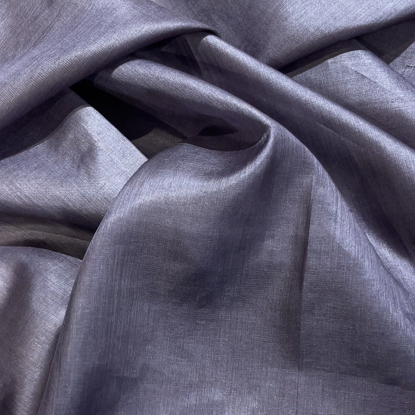 Изысканная итальянская ткань из 100% натурального шелка нежного лавандово-фиолетового цвета с благородным блеском от производителя Diffusione Tessile. Натуральный шелк обладает премиальными характеристиками: гипоаллергенный, приятный к телу, обладает естественной терморегуляцией — создает ощущение прохлады в жару и сохраняет тепло в прохладную погоду. Мягкая струящаяся фактура образует элегантные драпировки, а нежный лавандовый оттенок с перламутровым блеском придает ткани утонченность и романтичность. Ткань полупрозрачная, для большинства изделий рекомендуется использование подкладки. Прекрасно подходит для создания свадебных платьев, вечерних нарядов, шифоновых блузок, элитных аксессуаров и декоративного текстиля.