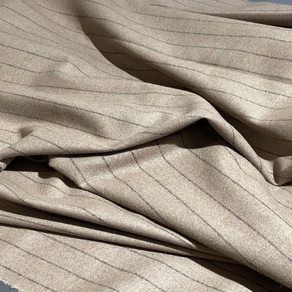 Итальянская шерсть насыщенного коричневого цвета с элегантной полоской (артикул 131346-2) — это благородная ткань для создания стильных и теплых демисезонных образов. Глубокий коричневый оттенок в сочетании с тонкими полосами создает визуально структурированный, утонченный и универсальный дизайн, который легко вписывается как в деловой, так и в повседневный гардероб. Натуральная шерсть обладает превосходными теплоизоляционными свойствами, отлично сохраняет тепло, при этом она воздухопроницаема и гигроскопична, обеспечивая комфорт в прохладную погоду. Мягкая, плотная фактура с легким начесом или гладкая приятна на ощупь, хорошо держит форму и устойчива к сминанию. Ткань идеально подходит для пошива классических брюк, юбок-карандашей, пиджаков, жилетов, платьев, а также для теплых аксессуаров.