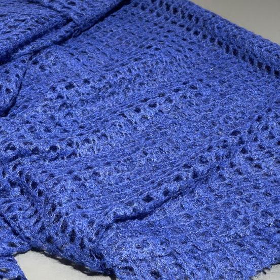 Итальянская шерсть глубокого синего цвета с ажурным узором (артикул 134479) — это элегантная ткань для создания нарядных демисезонных вещей. Богатый синий цвет в сочетании с ажурным вязаным или тканым узором создает эффект объемного кружева, придавая материалу изысканность и женственность. Натуральная шерсть обладает превосходными теплоизоляционными свойствами, при этом она воздухопроницаема и гигроскопична. Ткань с ажуром хорошо драпируется и выглядит невесомо, сохраняя при этом способность согревать. Идеально подходит для пошива легких жакетов и кардиганов, нарядных платьев, элегантных топов, шарфов и палантинов.