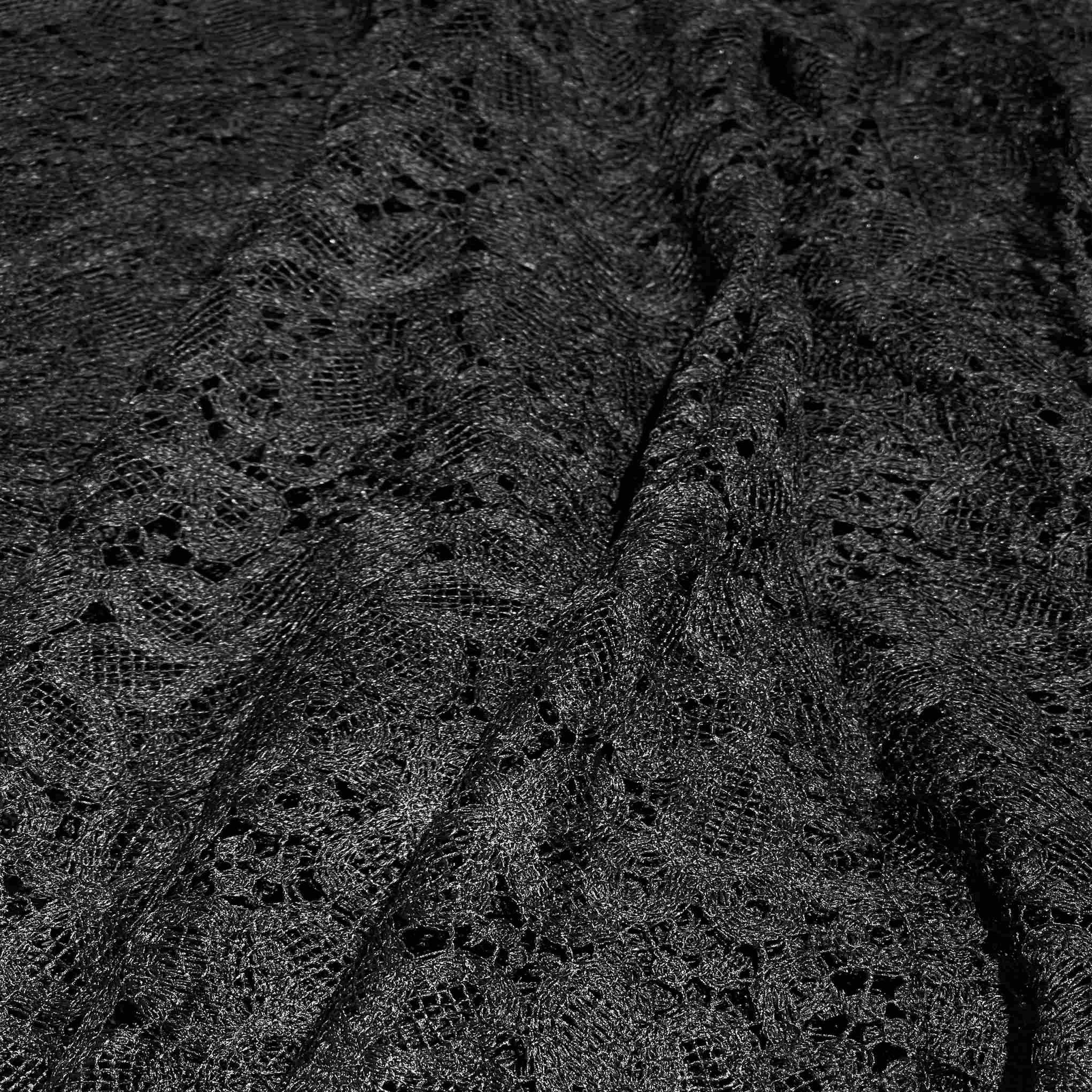 Итальянская вискоза глубокого черного цвета в изысканном кружевном исполнении (артикул 150253-2) — это воплощение утонченной женственности и элегантности. Благородный черный цвет придает ажурному кружеву особую выразительность и загадочность, а вискозная основа обеспечивает мягкость, шелковистость и превосходную драпируемость. В отличие от синтетических аналогов, вискозное кружево более приятно к телу, гигроскопично и комфортно в носке. Материал идеально подходит для пошива вечерних и коктейльных платьев, блузок, белья, пеньюаров, а также для декоративных элементов и отделки, требующих особой нежности и изысканности.