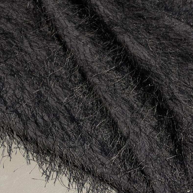 Итальянская вискоза глубокого черного цвета с оригинальной фактурой "травка" (артикул 131350-2) — это стильная, фактурная ткань для создания выразительных и уютных образов. Насыщенный черный цвет в сочетании с ворсистой, рельефной поверхностью "травка" создает эффектный, объемный и загадочный вид с богатой текстурой. Вискозная основа обеспечивает мягкость, гигроскопичность и комфорт при носке. Ткань хорошо драпируется, несмотря на свою фактурность, и приятна к телу. Идеально подходит для пошива уютных кардиганов, стильных жакетов, жилетов, детской одежды, пледов, декоративных подушек, а также для креативных аксессуаров и элементов костюмов.