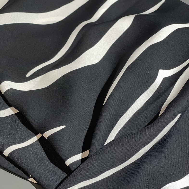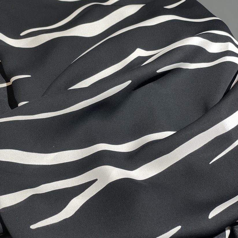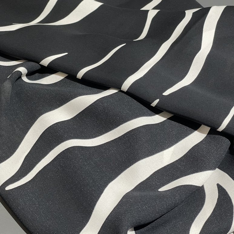 Ткань может дать усадку 3-5% после первой стирки. При правильном уходе демонстрирует отличную стойкость черно-белого контраста и четкость анималистичного принта.