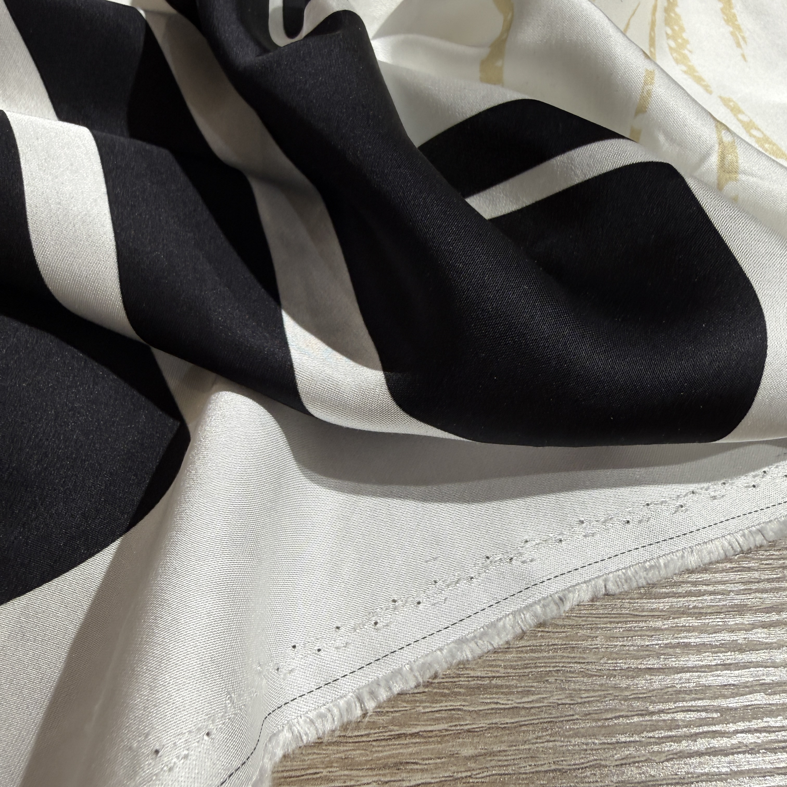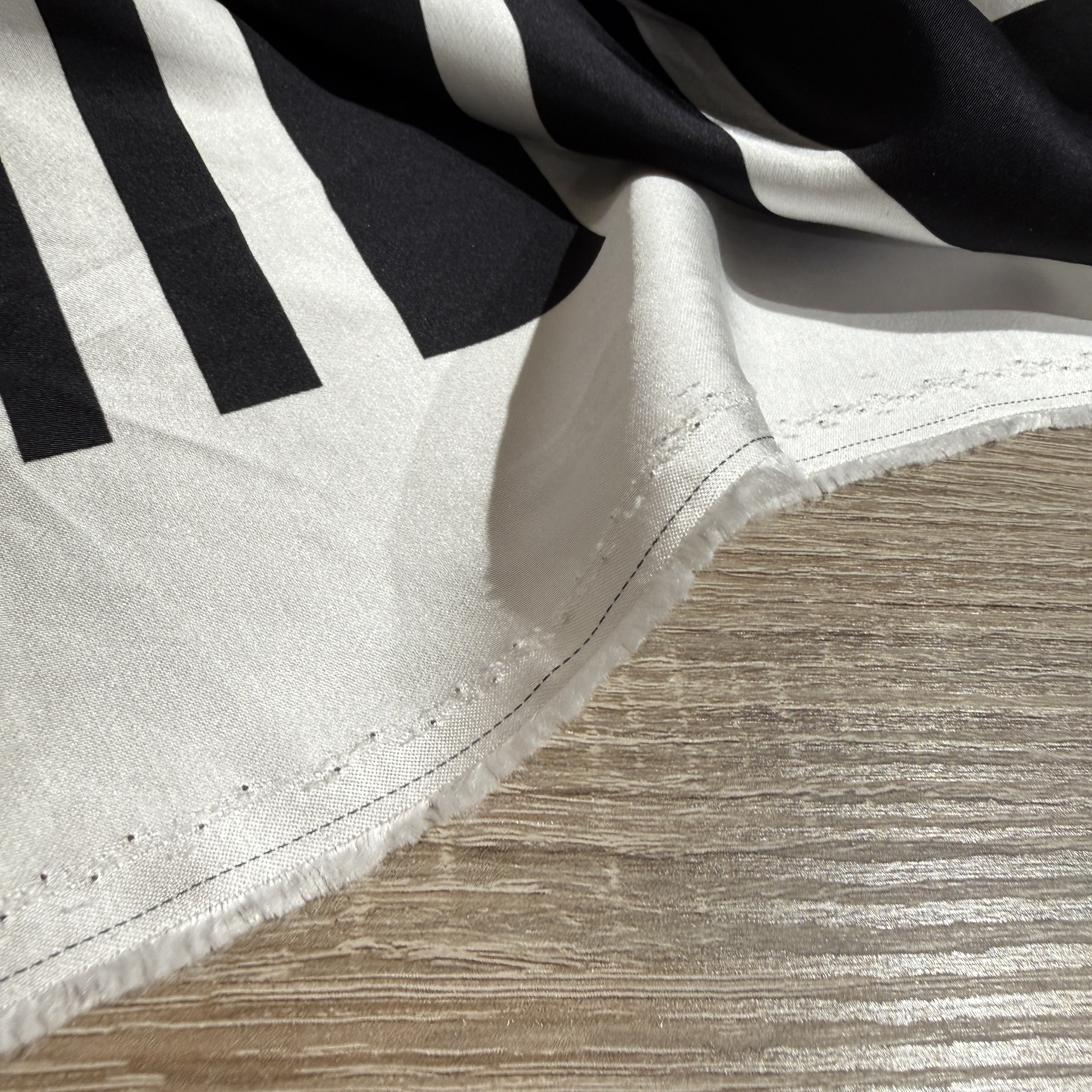 Ткань может дать усадку 3-5% после первой стирки. При правильном уходе демонстрирует хорошую стойкость цвета и четкость геометрического принта.