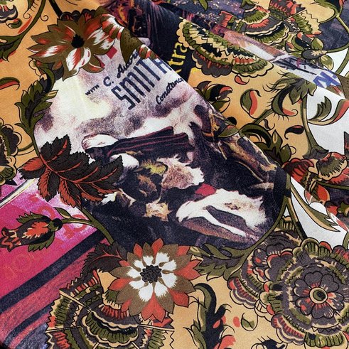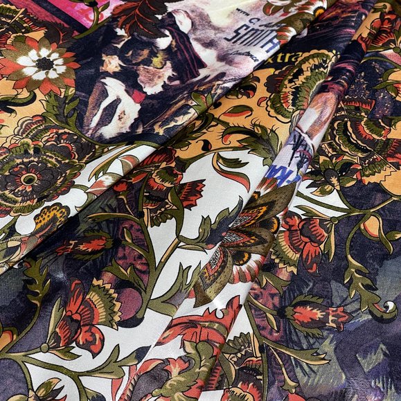 Деликатная стирка при температуре до 30°C в ручном или машинном режиме для шелка/деликатных тканей. Используйте мягкие моющие средства для цветных тканей, избегайте отбеливателей и агрессивного трения. Отжимайте на низких оборотах. Сушите в расправленном виде в тени, изнанкой наружу, чтобы сохранить яркость многоцветного рисунка. Гладьте с изнаночной стороны утюгом, установив режим «шелк».