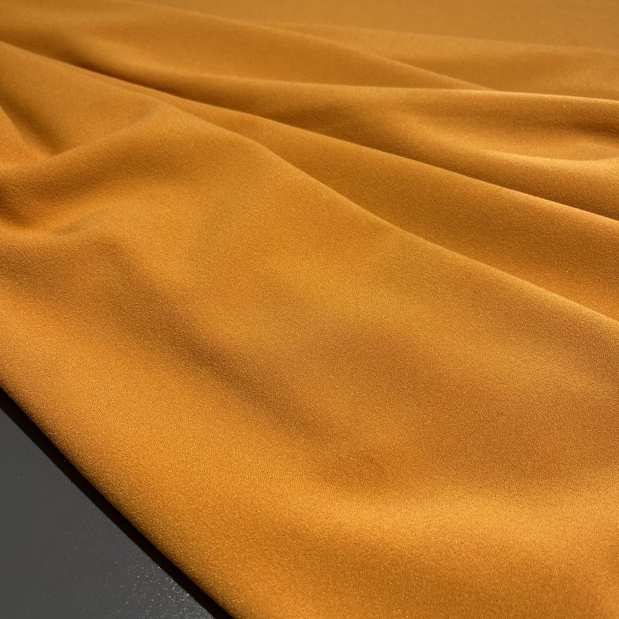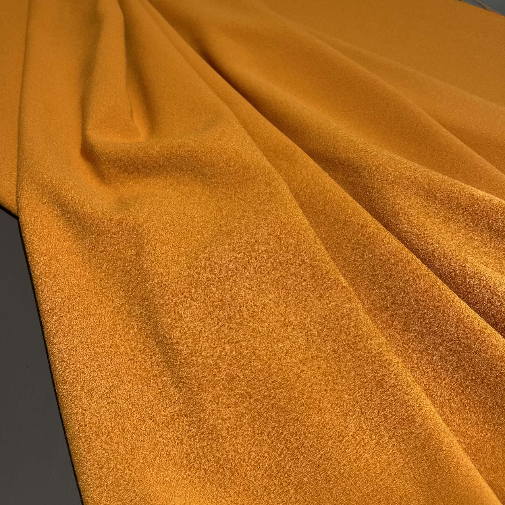 Итальянская вискоза яркого оранжевого цвета (артикул 139250) — это энергичная, стимулирующая творчество ткань с сочным, жизнерадостным оттенком. Материал обладает мягкой матовой фактурой и характерным для качественной вискозы благородным, приглушенным блеском. Креповое переплетение нитей обеспечивает ткани отличную драпируемость, легкость и способность образовывать красивые, пластичные складки. Будучи дышащей и гигроскопичной, эта вискоза комфортна для летней и демисезонной носки. Яркий оранжевый цвет делает ткань идеальным выбором для создания акцентных предметов гардероба, вечерних нарядов или деталей в стиле бохо. Она устойчива к пиллингу, что сохраняет безупречный вид изделий. Из этой ткани шьют платья-макси, летящие блузки, юбки, шарфы и топы. Ткань полупрозрачна, поэтому для большинства моделей рекомендуется подкладка.