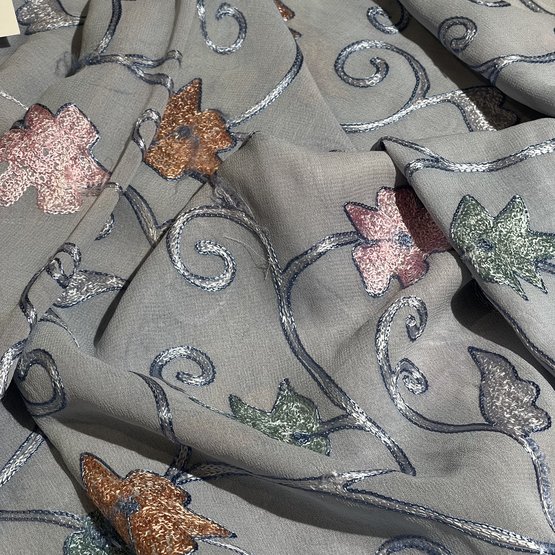 Итальянская вискоза серого цвета с контрастным цветочным принтом (артикул 178457) — это элегантная и универсальная ткань для создания современных, женственных и сдержанных образов. Материал обладает мягкой матовой фактурой с легким креповым эффектом, что обеспечивает ему отличную драпируемость и пластичность. Графичный цветочный рисунок (часто в черном, белом или пастельных тонах) на нейтральном сером фоне добавляет ткани глубины, изящества и актуальности, делая ее подходящей как для повседневной, так и для офисной одежды в стилях smart casual, минимализм или casual chic. Высокая воздухопроницаемость натуральных вискозных волокон гарантирует комфорт в носке в демисезонный период. Ткань подходит для пошива платьев, блузок, юбок, брюк и легких жакетов. Она устойчива к пиллингу, что сохраняет четкость и контрастность принта. Полупрозрачность материала требует использования подкладки.