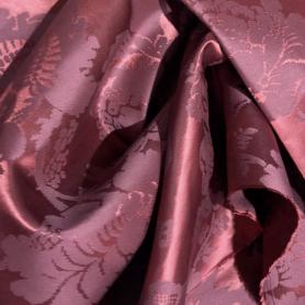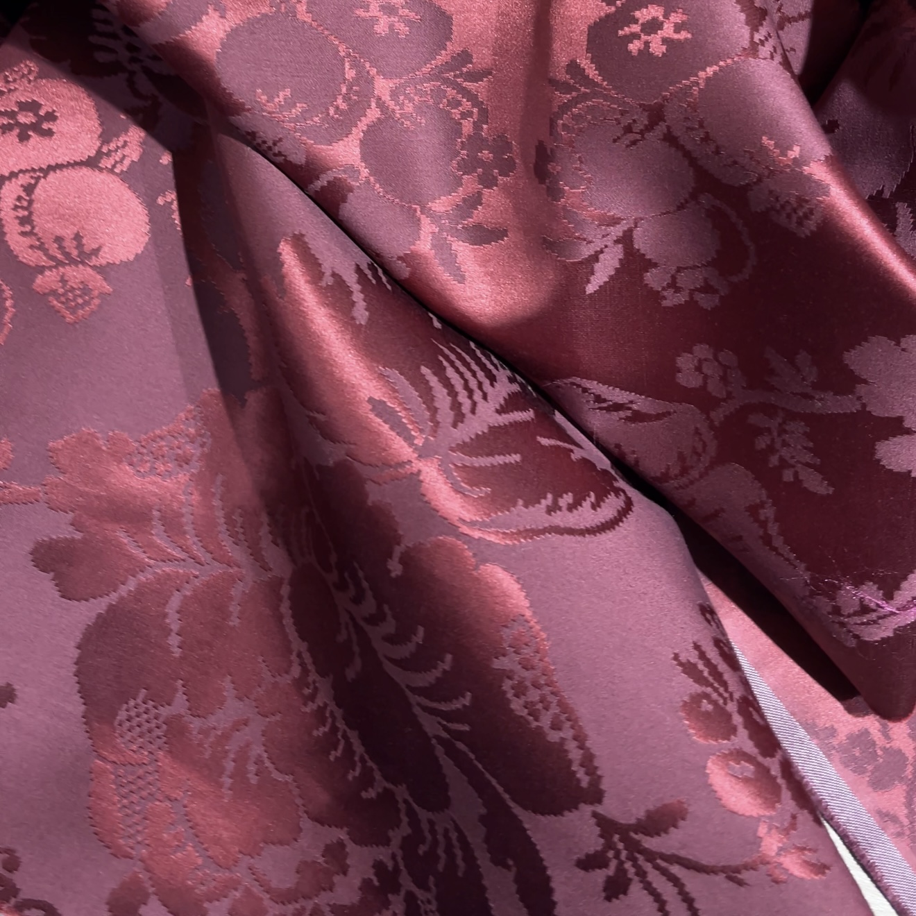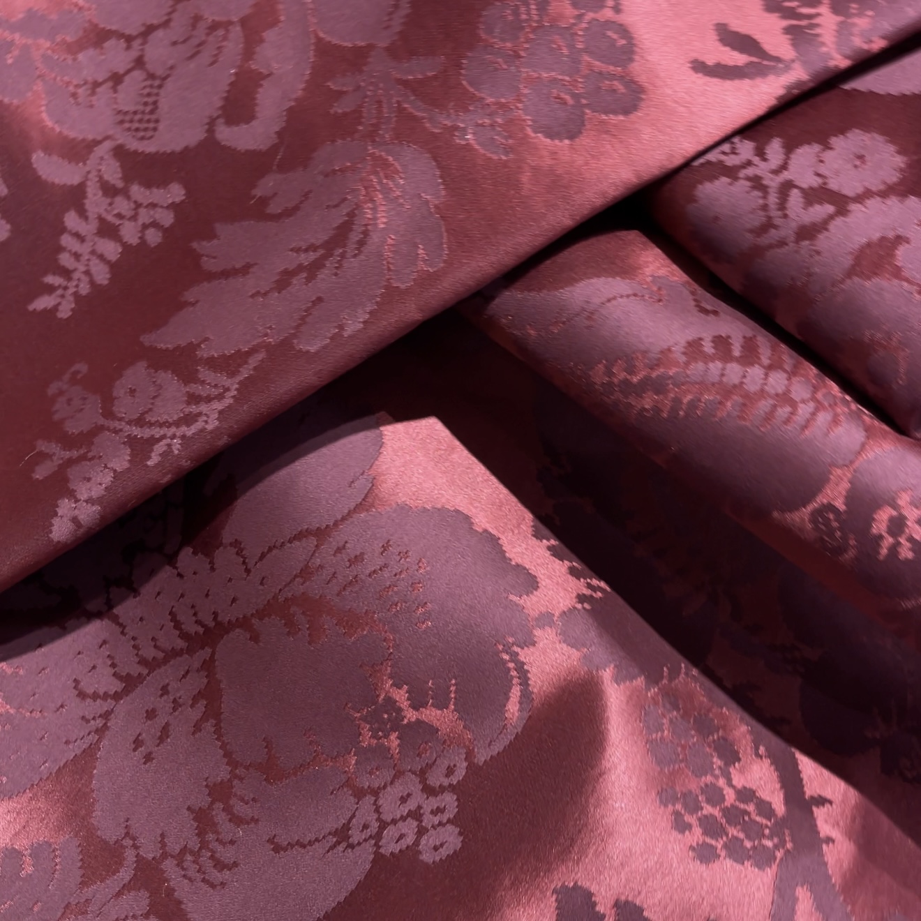 Роскошная итальянская ткань премиального качества из комбинации 60% вискозы и 40% шелка в благородном винно-красном цвете с изысканным цветочным узором от бренда Diffusione Tessile. Материал сочетает в себе натуральность шелка и практичность вискозы, создавая мягкую, струящуюся текстуру с благородным блеском. Нежная фактура прекрасно драпируется, образуя элегантные складки, а цветочный принт добавляет ткани романтичности и утонченности. Ткань полупрозрачная, рекомендуется использование подкладки для создания готовых изделий. Идеально подходит для пошива вечерних платьев, блузок, шарфов, свадебных аксессуаров и элитного белья.