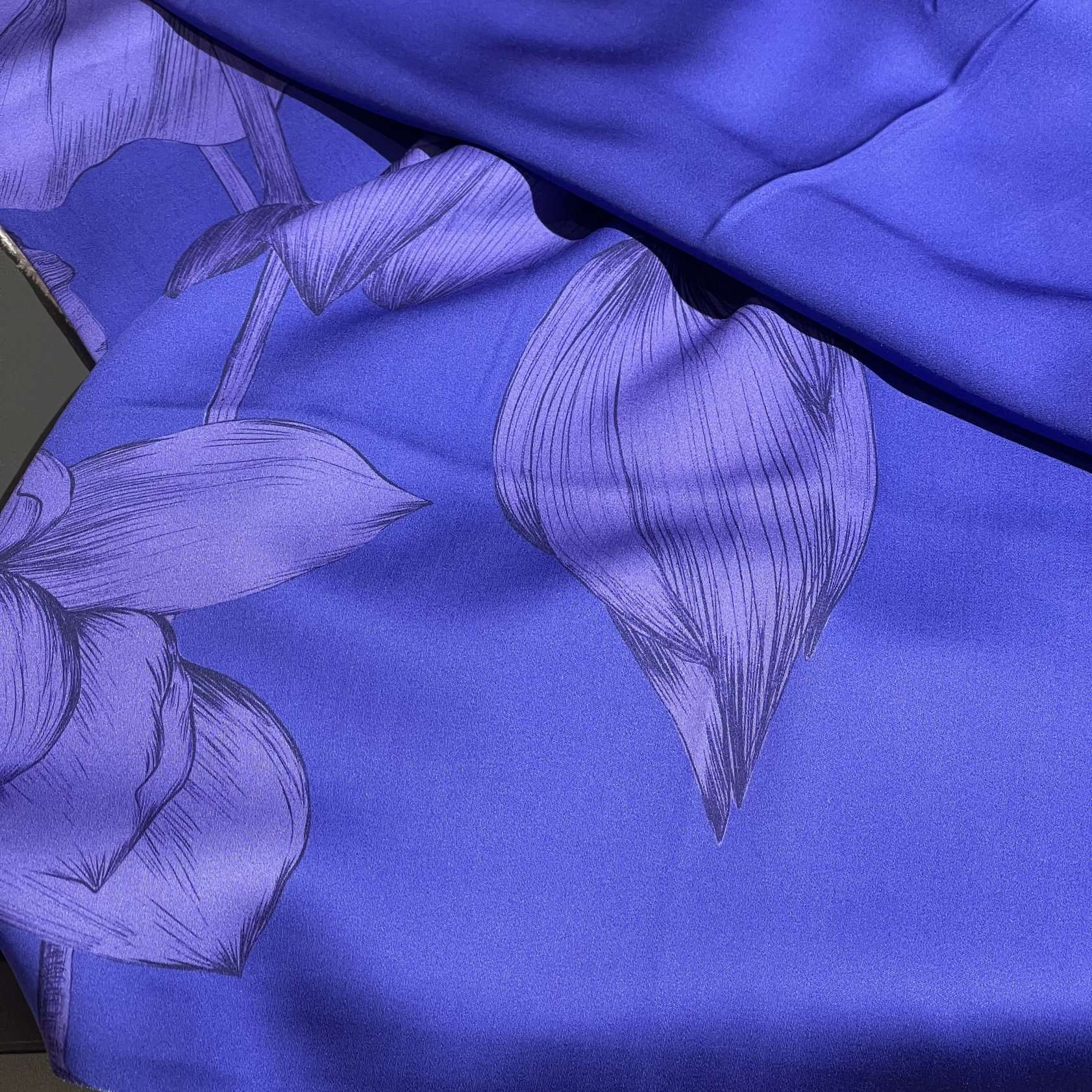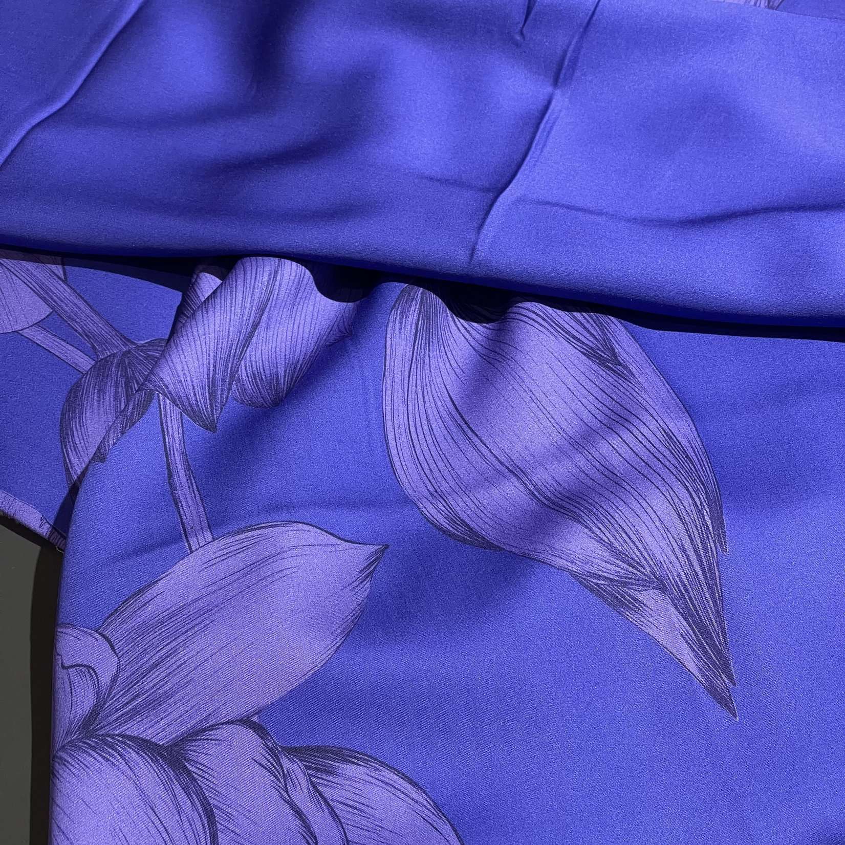 Деликатная стирка при температуре до 30°C в ручном или машинном режиме для шелка/деликатных тканей. Используйте мягкие моющие средства для цветных тканей, избегайте отбеливателей и агрессивного трения. Отжимайте на низких оборотах. Сушите в расправленном виде в тени, изнанкой наружу, чтобы сохранить яркость цвета и рисунка. Гладьте с изнаночной стороны утюгом, установив режим «шелк».